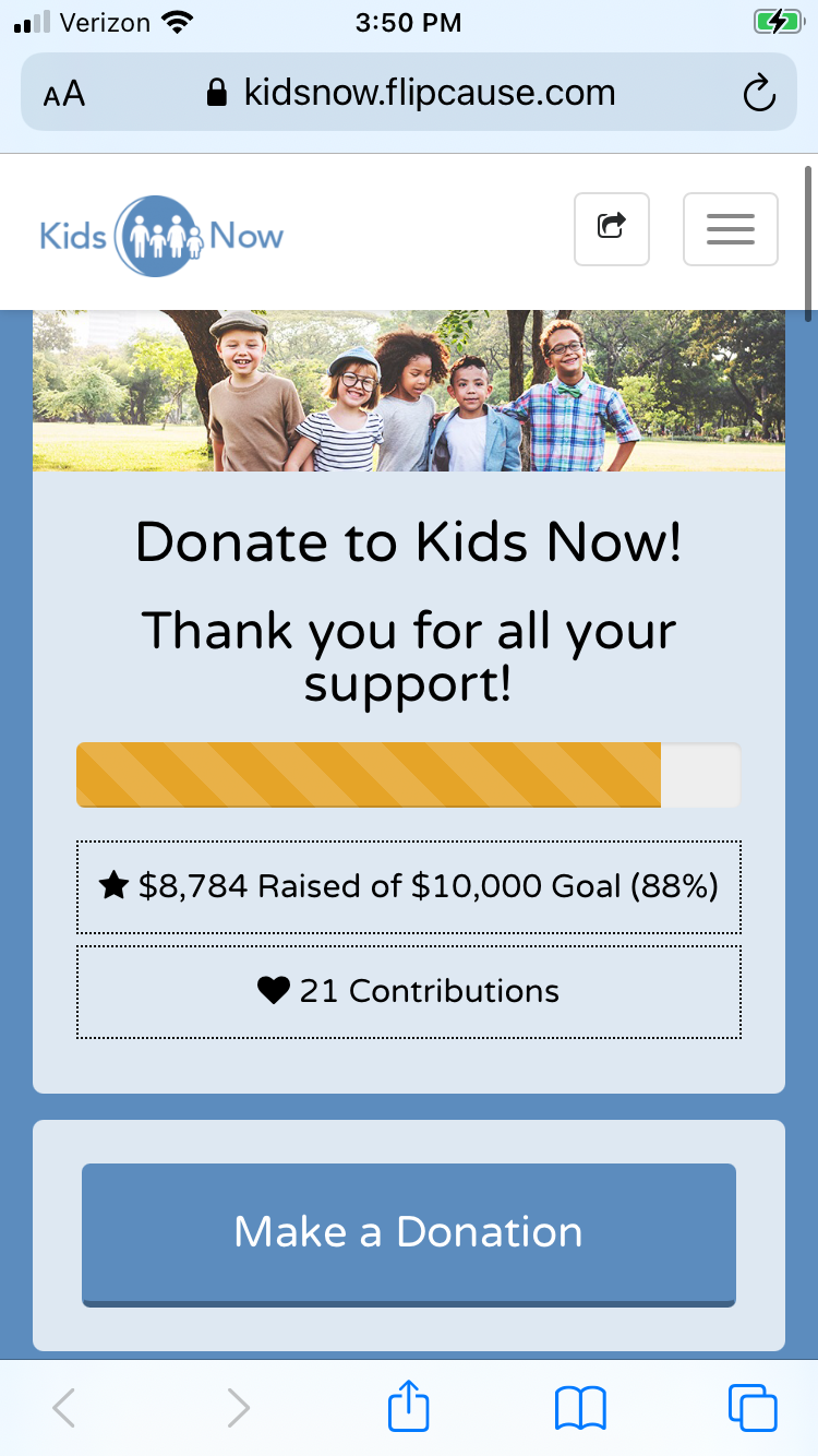 Donor sees your fundraising page and progress