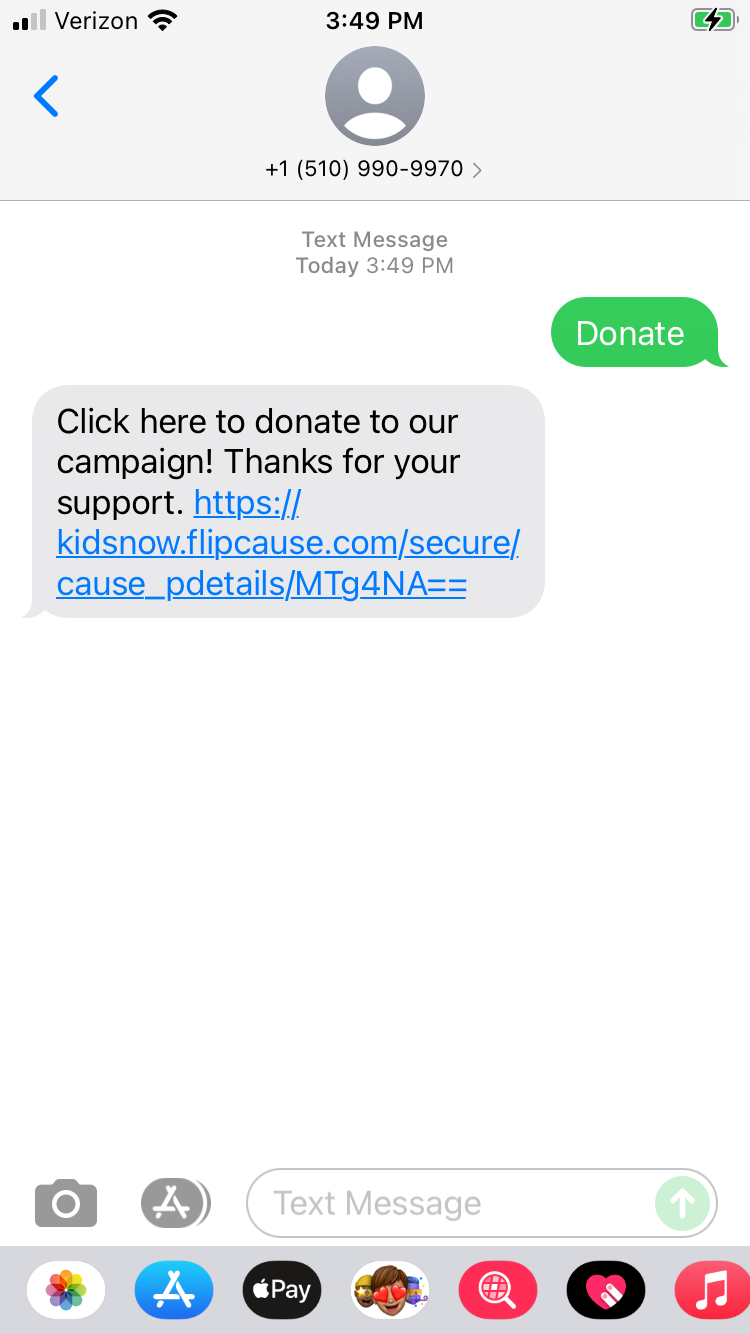 This version of Text-to-Give offers a much more modern donation experience. Since smartphones can now display mobile responsive web pages, the need for a phone carrier to act as a middle-man for a text donation has become obsolete. With mobile checkout, supporters text a keyword to a phone number or short code. But instead of having a predetermined donation amount added to their phone bill, the supporter receives a custom message with a link to the organization’s fundraising page.